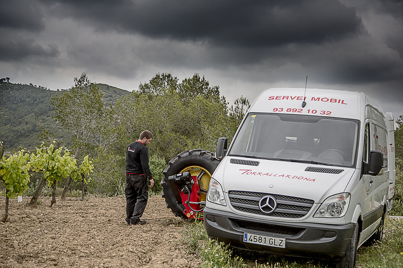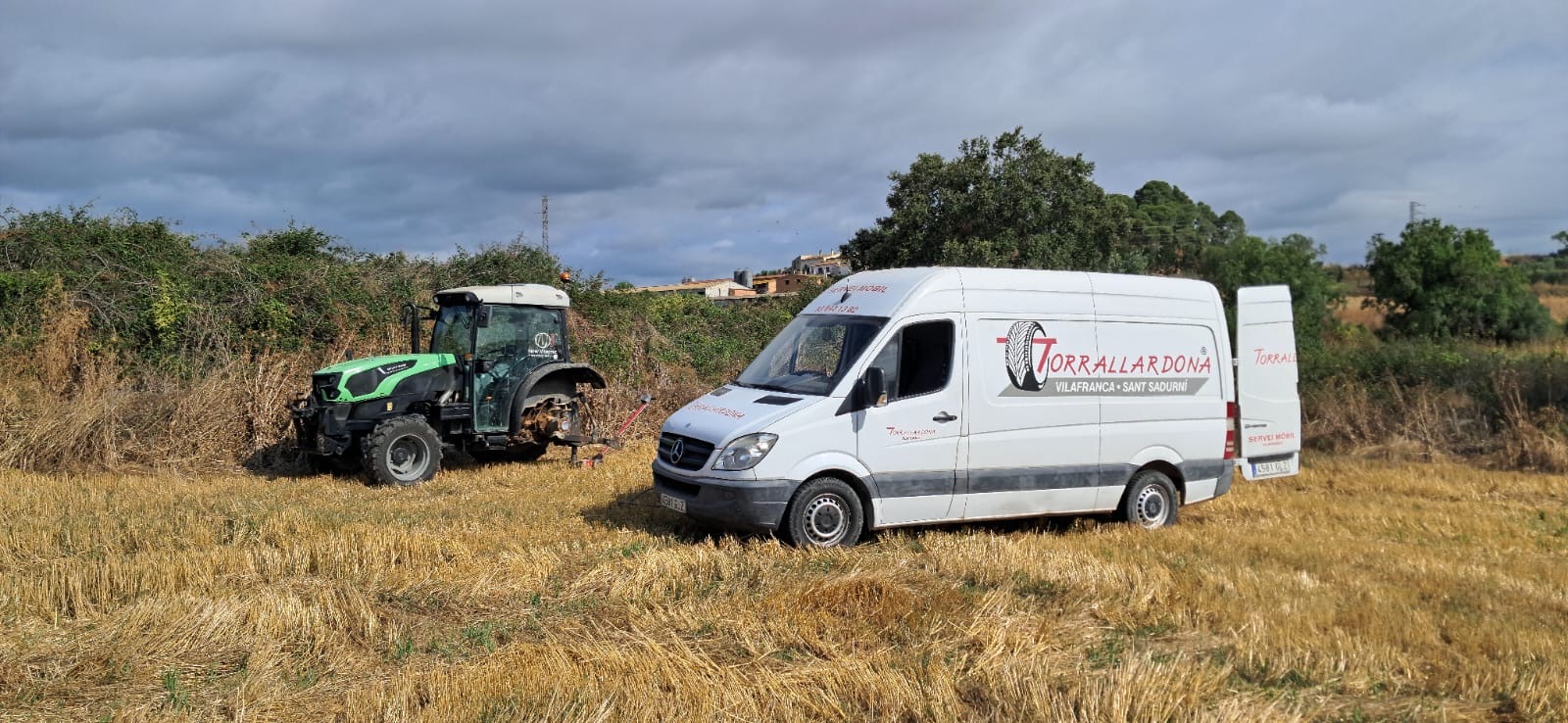 Disponemos de varios vehículos taller, para poder cambiar y reparar los neumáticos donde haga falta, especialistas en neumáticos de gran volumen, 24H en campaña vendimia.