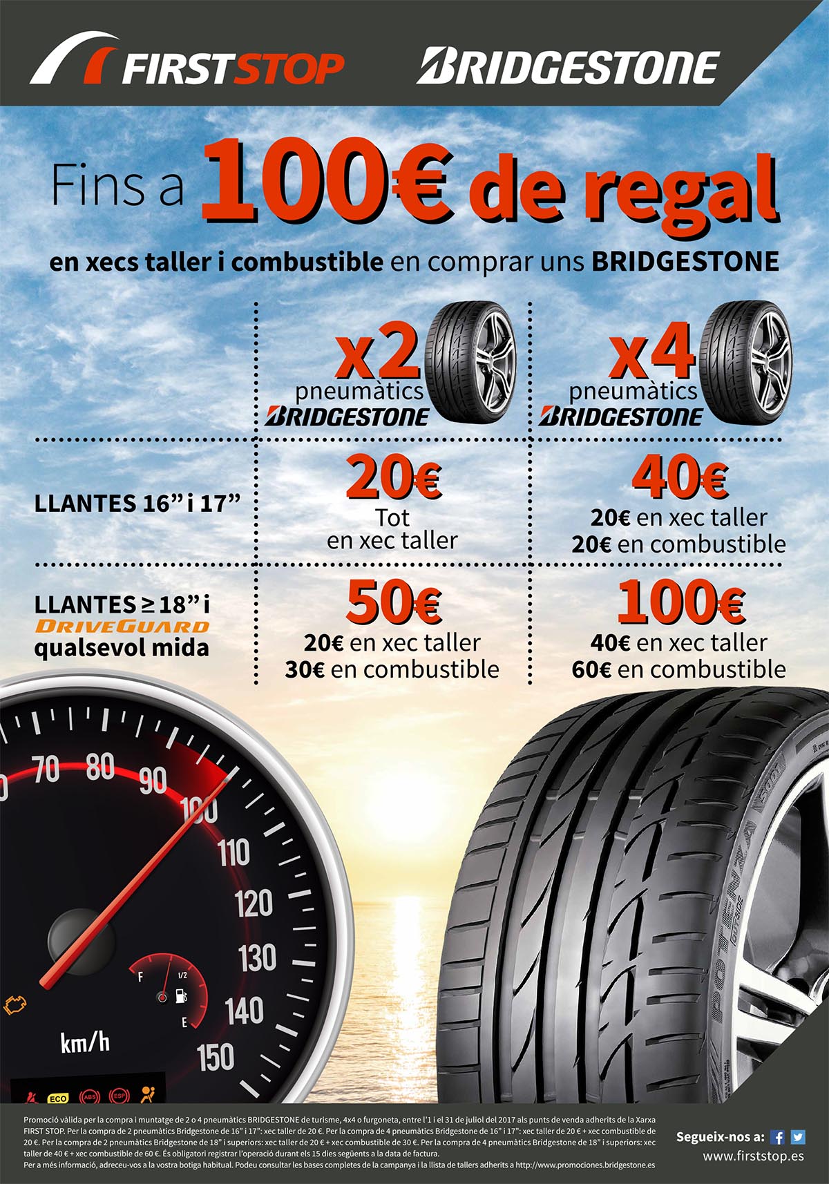 fins a 100€ de regal en xecs taller i combustible en comprar uns Bridgestone